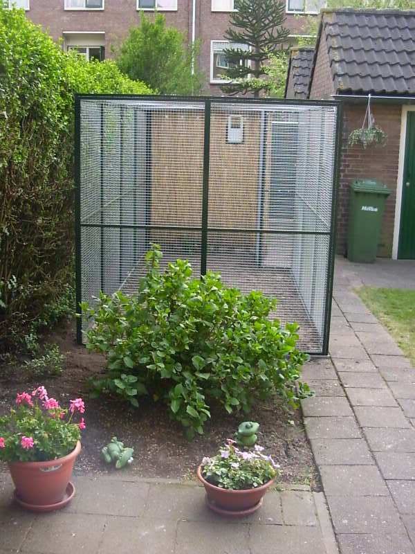 Als het goed is komen er dit weekend ook struiken enzo in.(op de foto's lijkt de voliere nog zo kaal...)