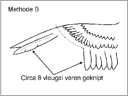 Ik heb Scooby in de kort tijd dat hij hier is al 2keer moeten kortwieken en nu moet het weer gebeuren. Is dat niet veel te vaak? Komt dat door zijn staart? Of knip ik gewoon niet kort genoeg? Hij kan nog erg goed vliegen... en het wordt steeds beter. Wat doe ik fout?  Ik gebruik overgens de manier van de heele vleugel rond... methode 3 was dat dacht ik...
