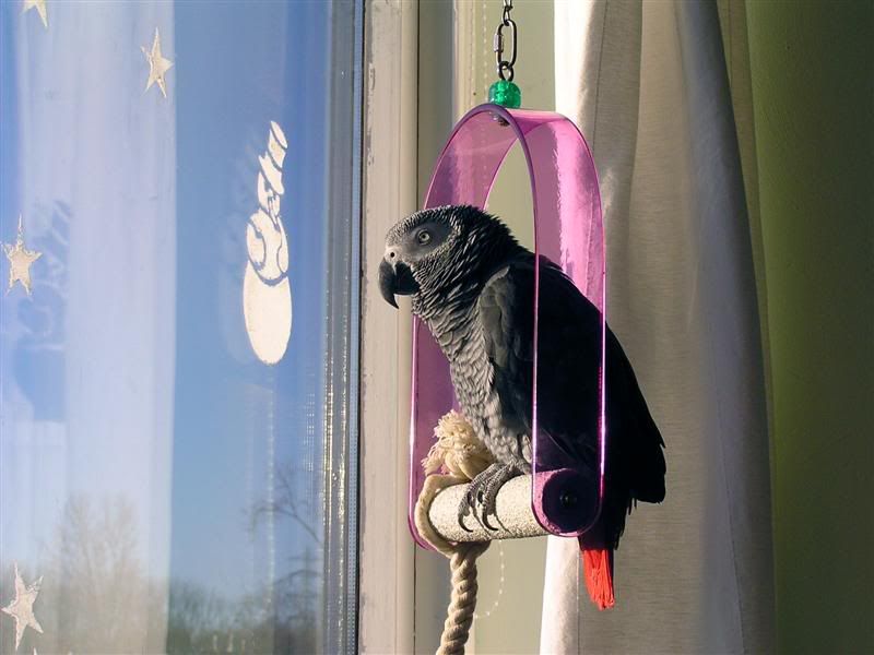 Ja, als ik iets van kerstachtigs in de kooi zou hangen zouden ze er wel op af gaan op den duur denk ik, haha, maar zoals ik al zei, dat heb ik niet in huis, dus zou ik er speciaal voor moeten kopen.