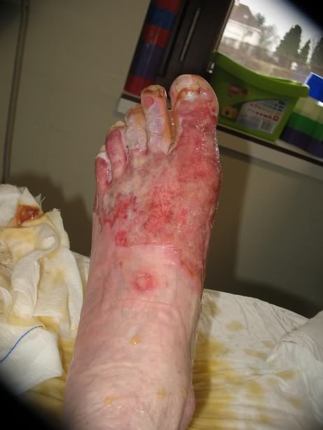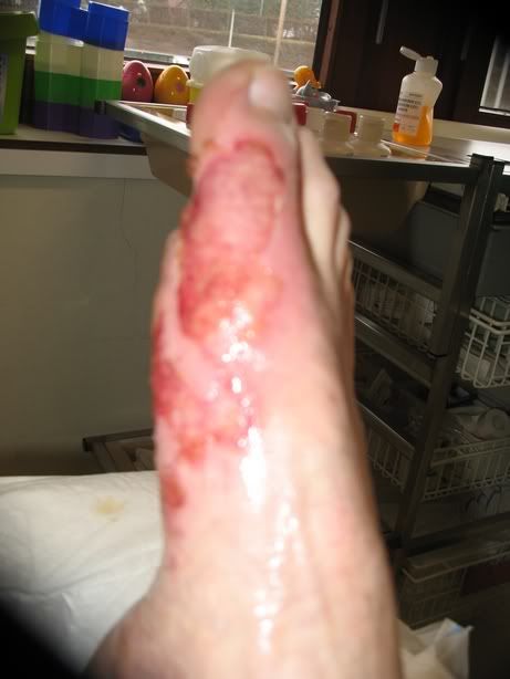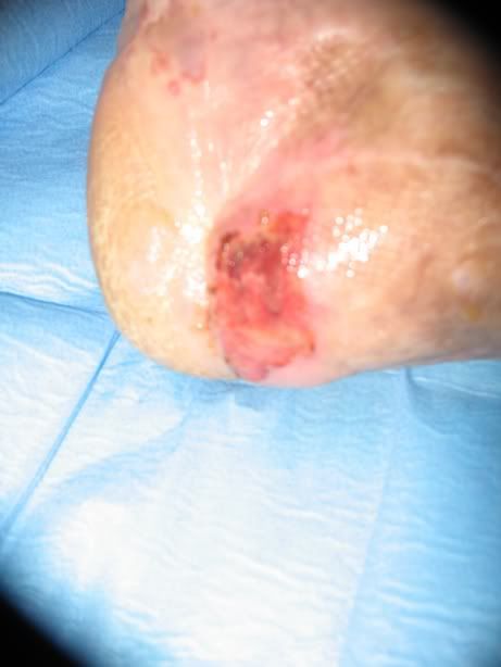 nu is het een kwestie van 5 dagen er geen druk op te zetten ,helemaal bedlegerig dus ,dat de huid niet zou scheuren of lossen ,na 5 dagen krijgt hij speciale sokken erover die constante druk geven en zou hij enkele passen gaan mogen zetten, zijn eerste passen zullen na 5 dagen wel naar de pot zijn denk ik  :)